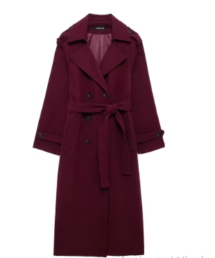 "معطف ماكسي أنيق للسيدات من HH باللون العنابي الغني، تصميمه مزدوج الصدر مع حزام يحدد الخصر ويعطي إطلالة راقية ومميزة. مصنوع من مزيج فاخر يوفر الدفء والراحة في الشتاء، بطول يصل للركبة أو أكثر حسب الموديل. قطعة مثالية للإطلالات الرسمية واليومية، تجمع بين الأناقة والفخامة في موسم البرد."