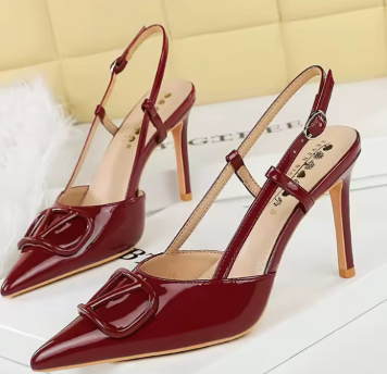 "صندل نسائي أنيق بكعب 9 سم، مصنوع من جلد فاخر يعطيك لمسة فخامة وعصرية. تصميمه تو مدبّب يبرز أناقة الرجل ويضيف طول ورشاقة للقدم. اللون النبيذي الغني يضيف لمسة جذابة لأي إطلالة صيفية، ومثالي للسهرات والمناسبات الخاصة. قاعدته مريحة مقارنة بكعبه العالي، ويعطي إحساس بالثقة والأناقة في كل خطوة."